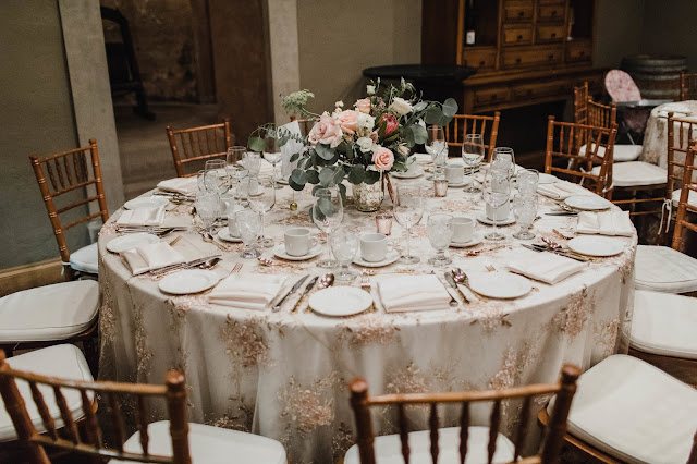 After the Ceremonies, guests were invited to a Reception in the Vintner's Cellar at Inn on the Twenty. 60 of their closest family and friends gathered for a delicious meal and delicious wines that yours truly picked out... Mmmm... I can't tell you enough how much I love the Cave Springs Dolomite line of wines. After Dinner, guests enjoyed music performed by a band and a beautiful sweets table.