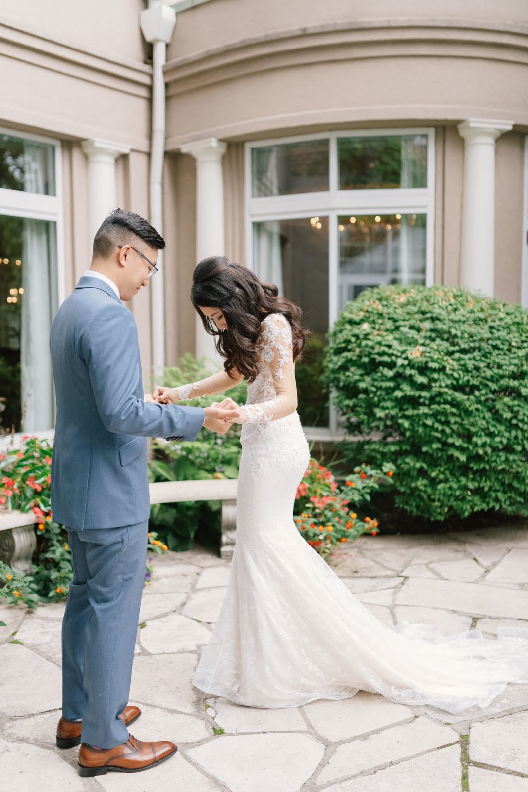 The morning started off at Queen's Landing where they got ready for their Big Day. Sonia and Tim wanted to have an intimate First Look. So, before their Ceremony they met up in the courtyard outside of the Atrium at Queen's Landing to see each other for the first time that day.