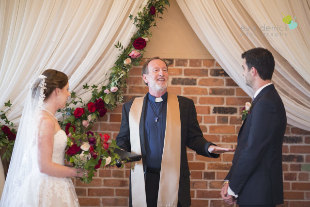 Caitlyn and Andrew had a Beautiful Winter Wedding. Although it was quite chilly outside, as soon as you walked into their reception space, the warm lighting and candlelight warmed you right up. The Pillar and Post has a way of doing that to you! The entire day was spent at the Pillar and Post. The ladies got ready there and then Caitlyn and Andrew had a very lovely "First Look" outside before their ceremony. They had a beautiful ceremony which was officiated by Caitlyn's Uncle in front of a beautiful backdrop designed by Bloom & Co. and Simply Beautiful. Their receiving table included Wedding photos of their parents and grandparents, a handmade wooden guestbook and a chalkboard sign that was designed by yours truly!