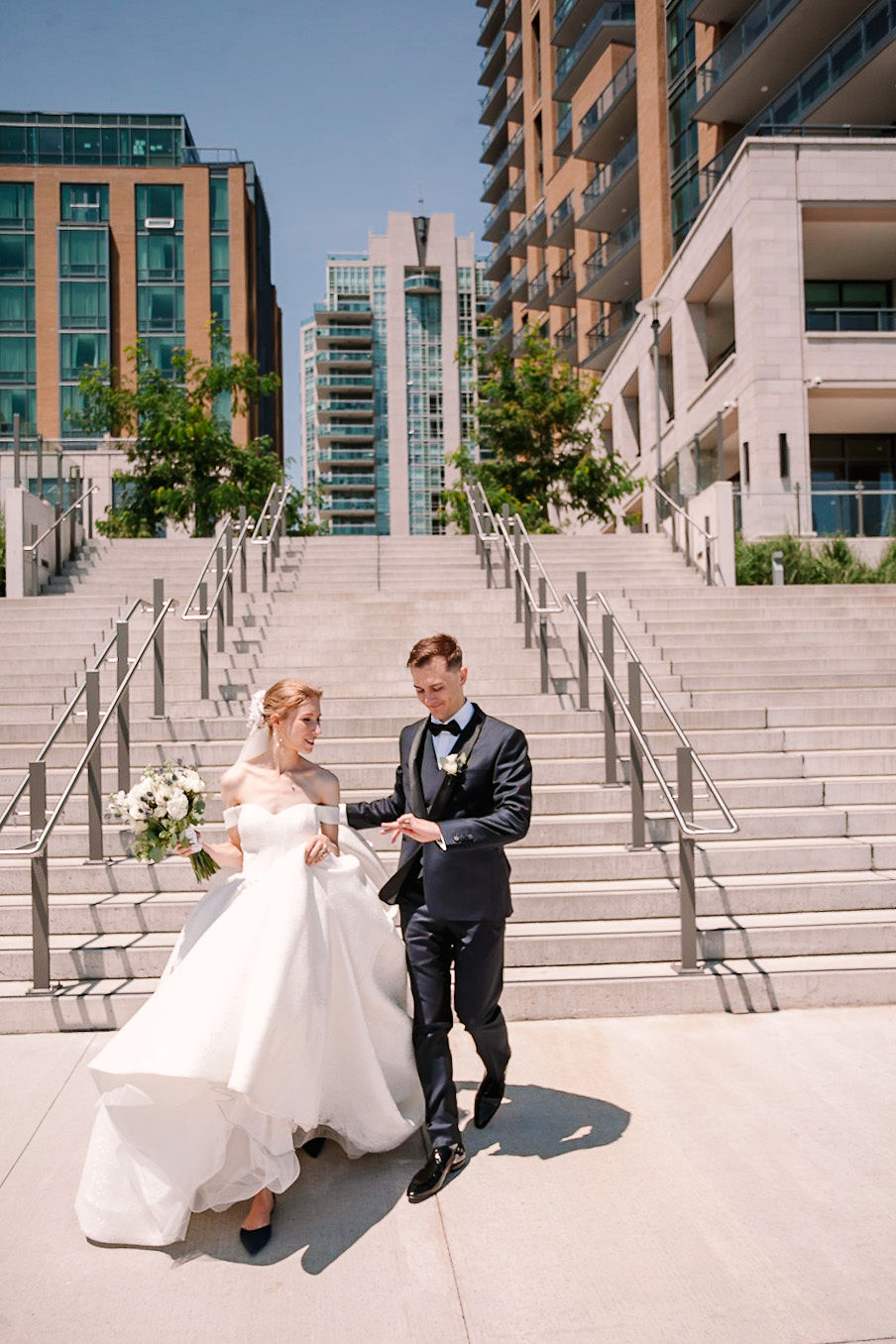 Caroline and William's wedding day began at The Pearl Hotel in Burlington where the two of them and their respective wedding party's got ready for the big day. After Caroline was dressed, she had a lovely moment on the terrace of her suite overlooking the water as she shared a first look with her father. After her first look, all of the ladies started walking towards the Holy Protection of the Blessed Virgin Mary Ukrainian Catholic Church which is only a 2 minute walk away and where the guys were already greeting the guests as they arrived.